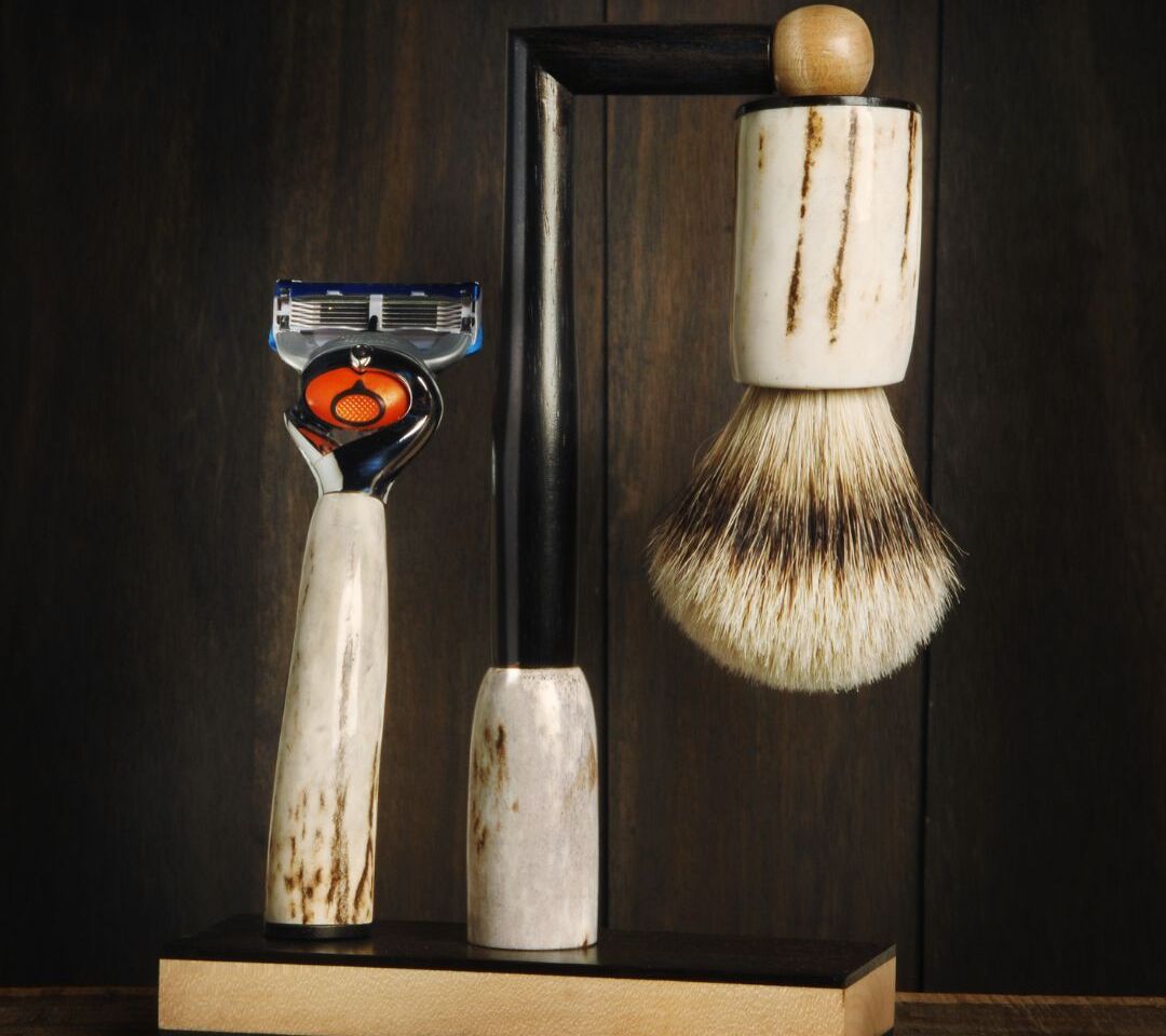 Potrebbe essere un elegantissimo set da barba realizzato interamente da mano dal Maestro Artigiano Stefano Raffa. Tutti i suoi set sono disponibili su ordinazione o personalizzabili nei materiali e forme, sul tipo di testina del rasoio e dimensioni del ciuffo del pennello.